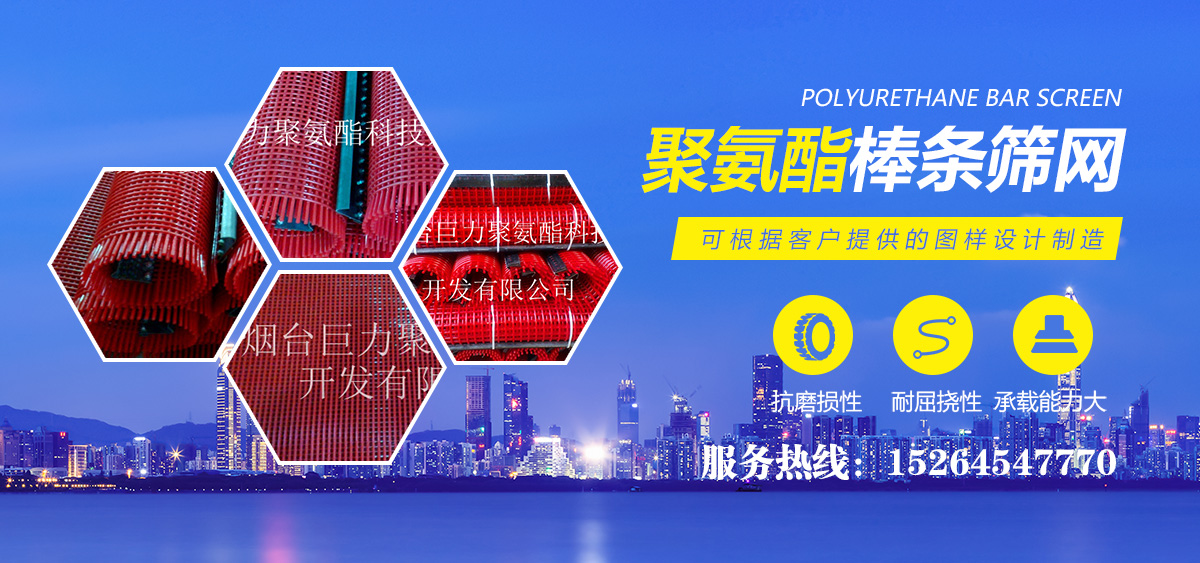 煙臺巨(ju)力聚氨(an)(an)酯(zhi)科技(ji)開發有限公司主營聚氨(an)(an)酯(zhi)篩板、聚氨(an)(an)酯(zhi)板、聚氨(an)(an)酯(zhi)棒條篩網,聚氨(an)(an)酯(zhi)弛張篩等(deng)。